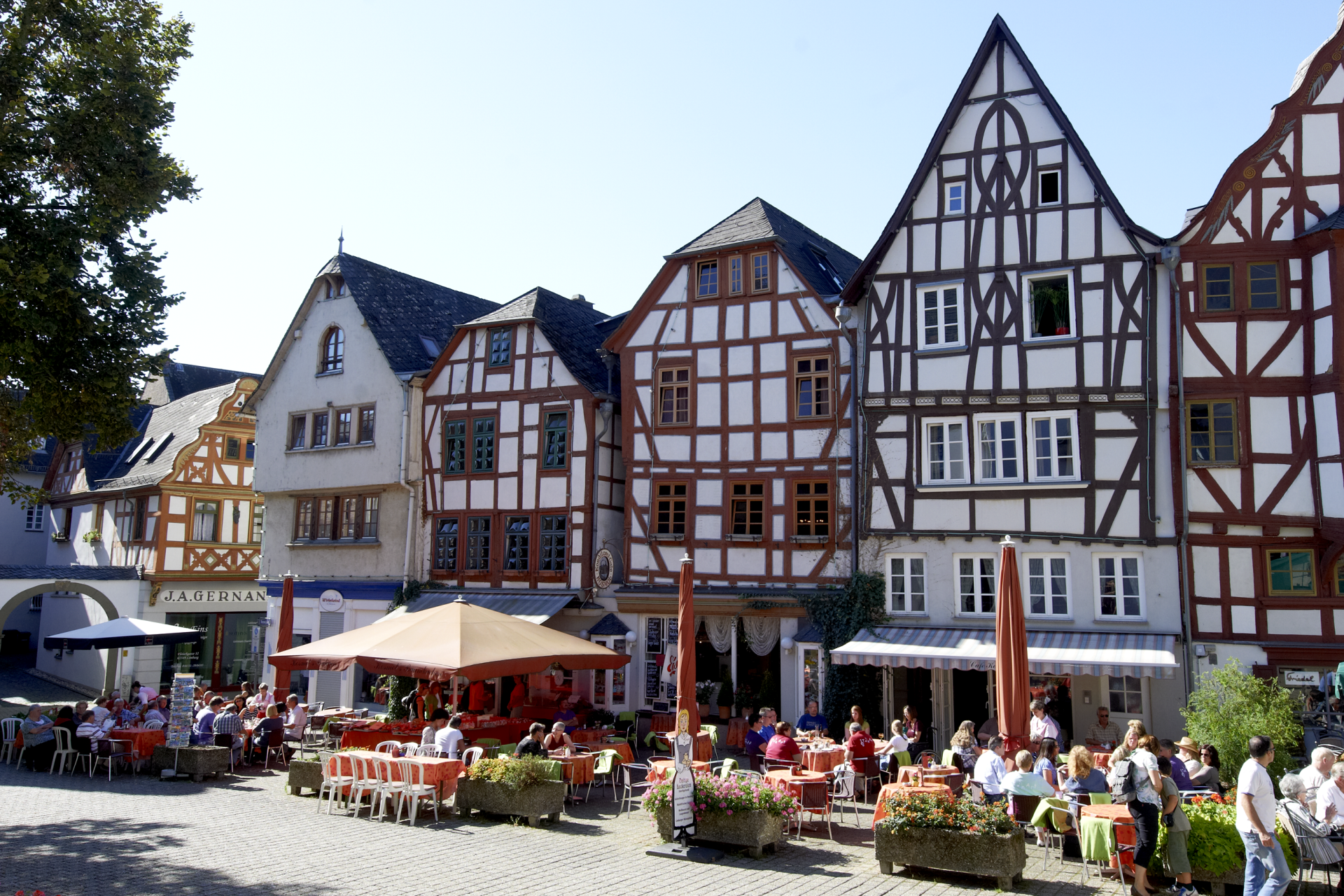 Bäckerei – Konditorei – Café Kosmol in Limburg. In Limburgs historischer Altstadt, der Franziskaner Kirche (Limburger Stadtkirche) genüberstehend und im Schatten des Domes gelegen.